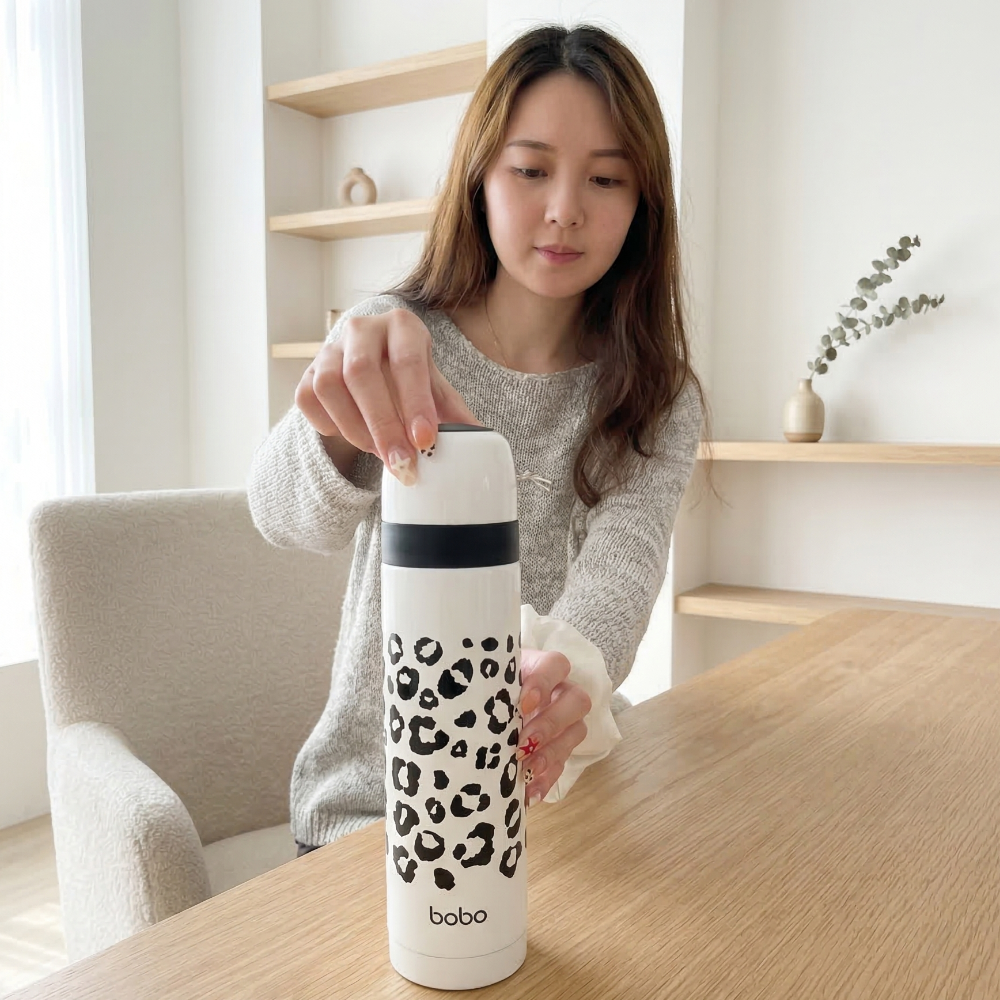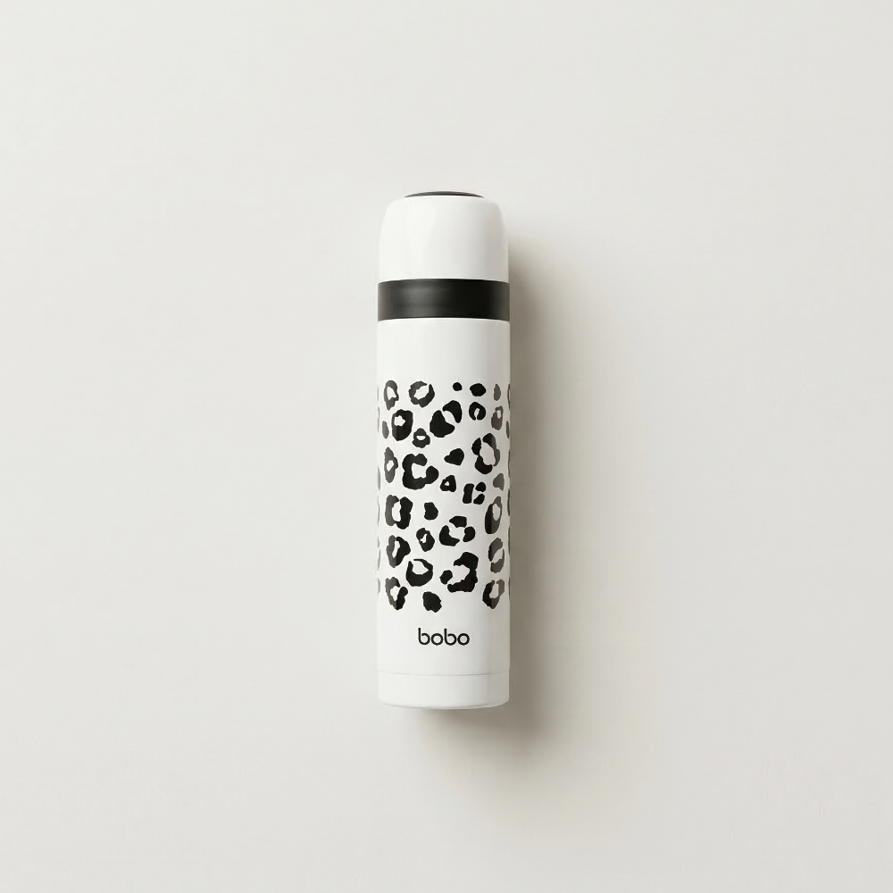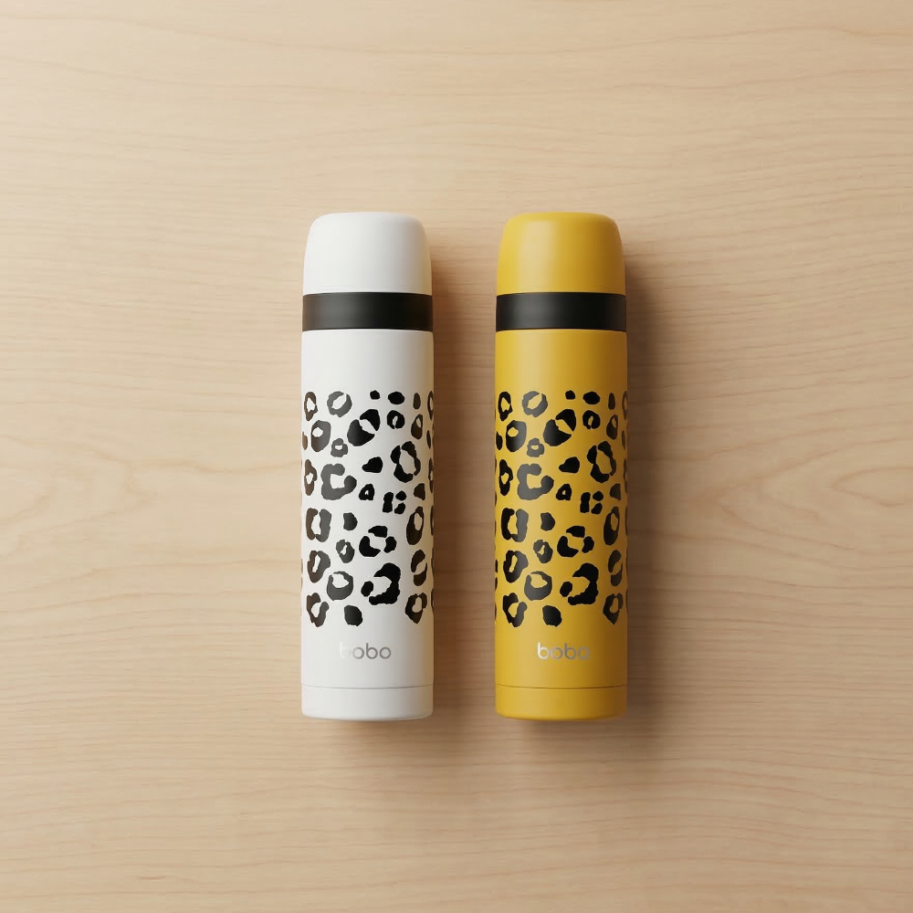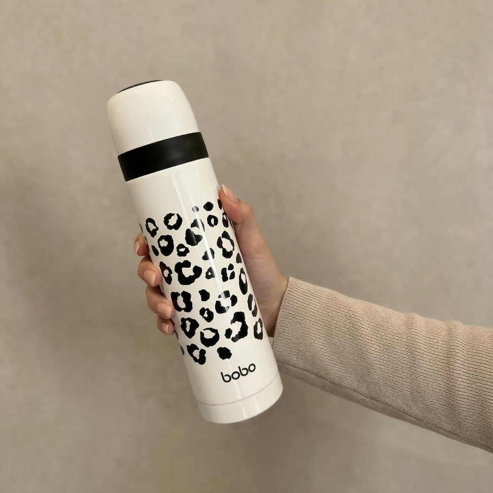不同於一般制式保溫瓶,以豹紋元素打造鮮明辨識度,放在桌面上也很有存在感。